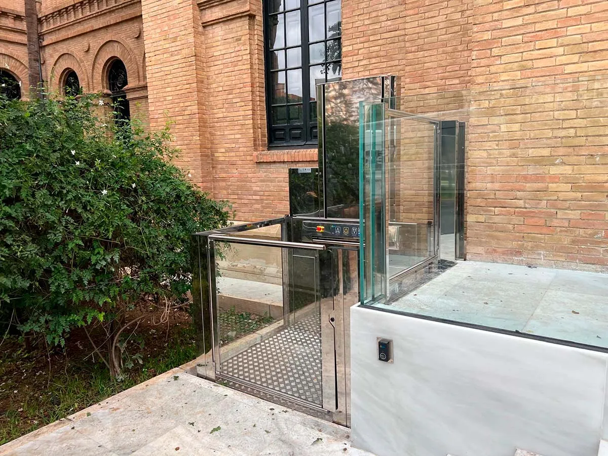 Para resolver este reto, Vilber ha incorporado un elevador de pequeñas alturas junto a la escalera de entrada, integrándolo con cerramientos acristalados y acabado en acero inoxidable para armonizar con la arquitectura existente. El sistema salva el desnivel entre el nivel exterior y el umbral del edificio, permitiendo el uso de sillas de ruedas y facilitando el paso con comodidad, mediante mandos accesibles y pulsador de llamada. Con esta solución, Vilber refuerza su compromiso con la accesibilidad, la seguridad y la calidad en entornos educativos de alta exigencia.