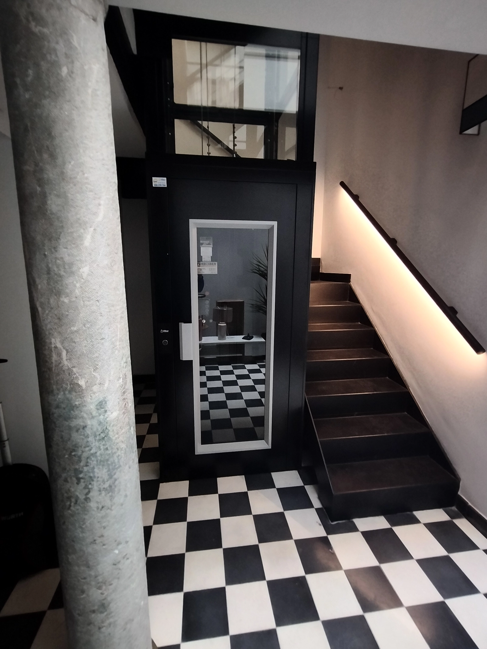 Para resolver esta necesidad, hemos instalado un elevador EVA-SPACE completamente integrado en el entorno, con un acabado que se adapta a la estética interior y convive de forma natural con la arquitectura existente. Su estructura compacta y cerramiento acristalado permiten un desplazamiento seguro, práctico y confortable, aportando funcionalidad sin renunciar a la armonía visual del conjunto. Con esta instalación, en Vilber reafirmamos nuestro compromiso con la accesibilidad, la seguridad y la calidad en cada proyecto.