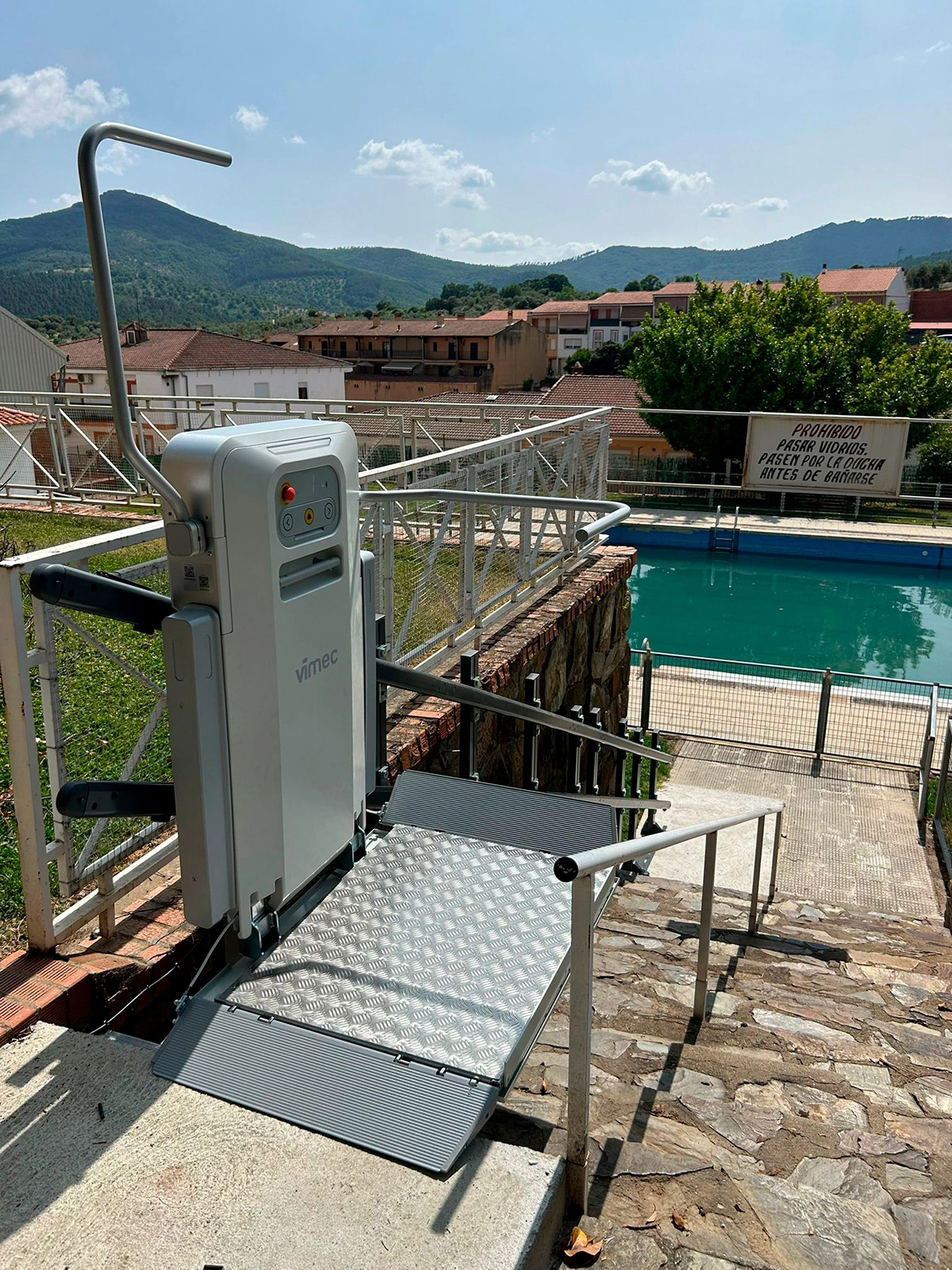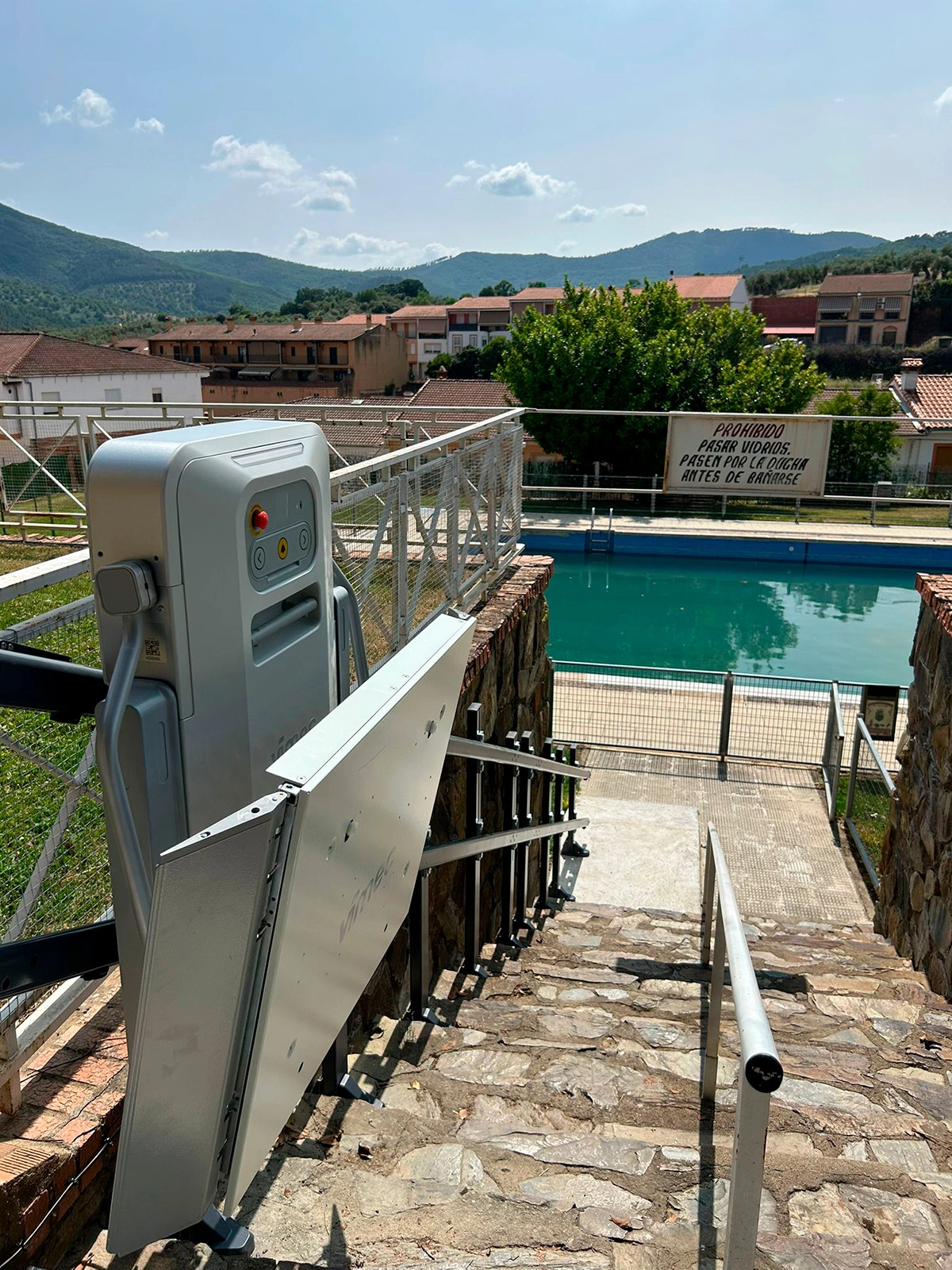 En la piscina municipal de Guadalupe, en Cáceres, el acceso desde la cota superior hasta la zona de baño se realizaba mediante una escalera de piedra con un notable desnivel. Esta configuración dificultaba la entrada a personas usuarias de silla de ruedas, personas mayores y familias con carritos, generando una barrera en un espacio público pensado para el ocio y el deporte de toda la población.