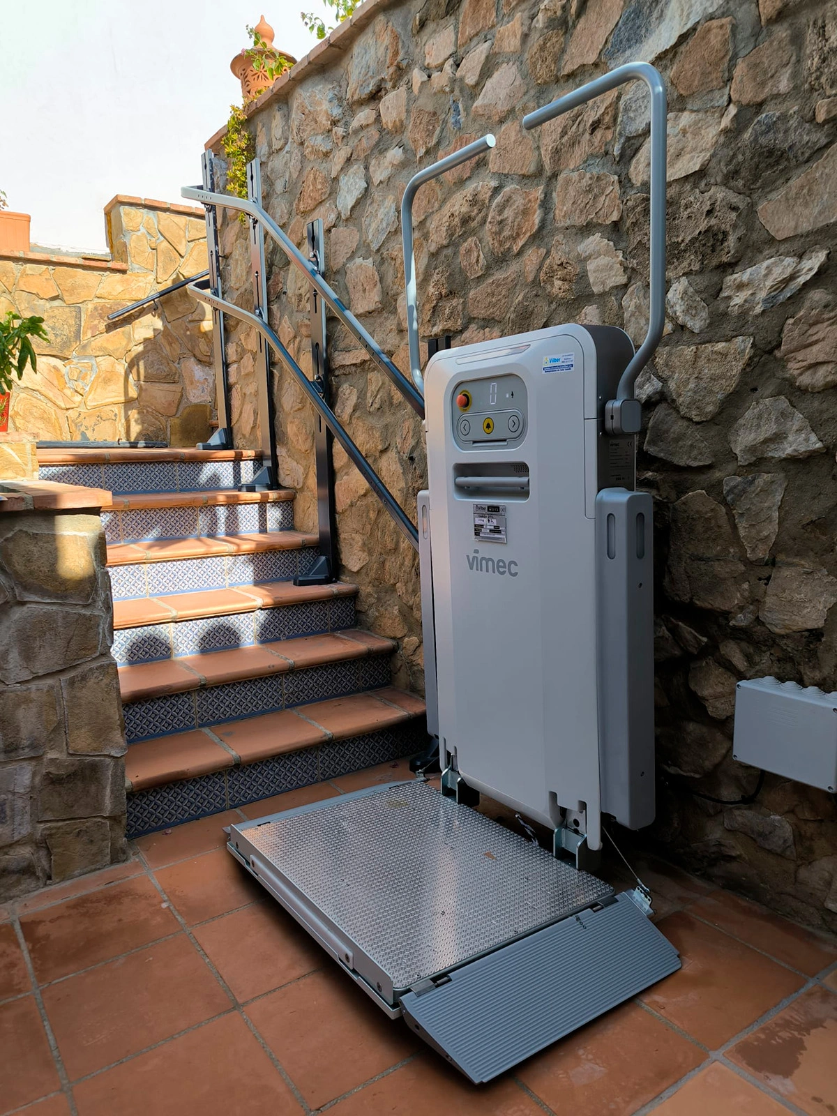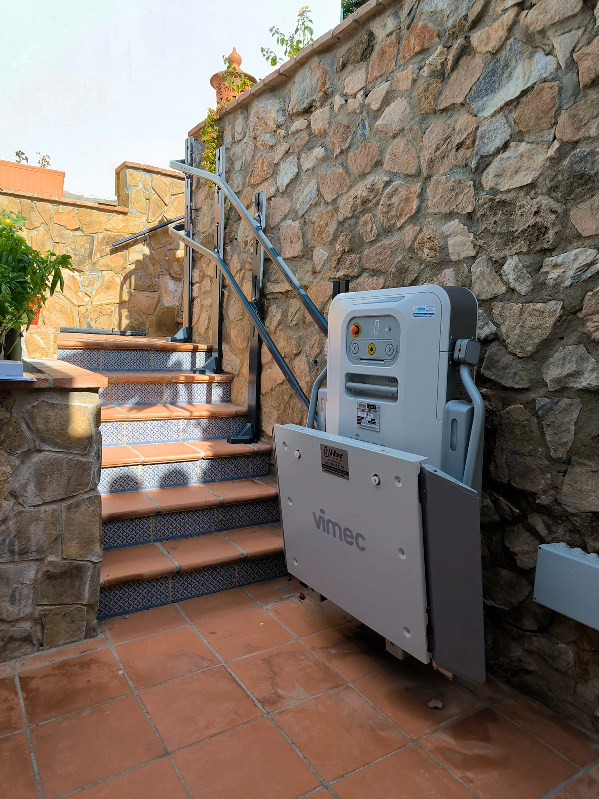En una vivienda residencial de Benalmádena se planteaba la necesidad de salvar un tramo de escaleras exteriores que conecta diferentes niveles del jardín y la zona de acceso. La presencia de peldaños de obra y muros de piedra dificultaba el paso a personas con movilidad reducida y hacía menos seguro el uso diario de este recorrido, especialmente para usuarios en silla de ruedas o con limitaciones para subir y bajar escaleras.