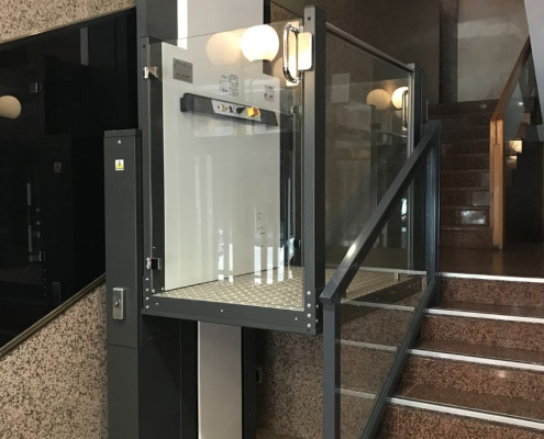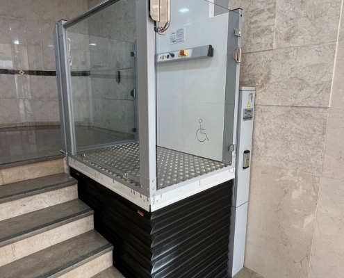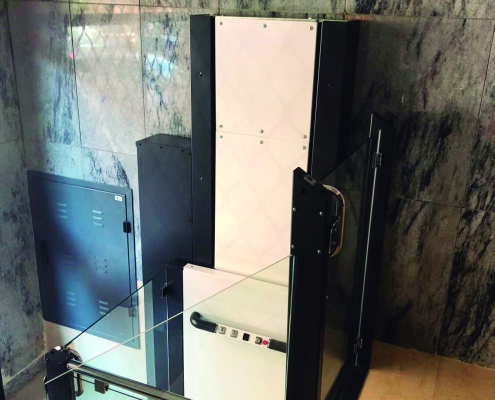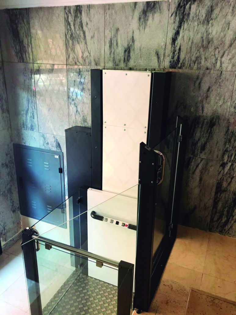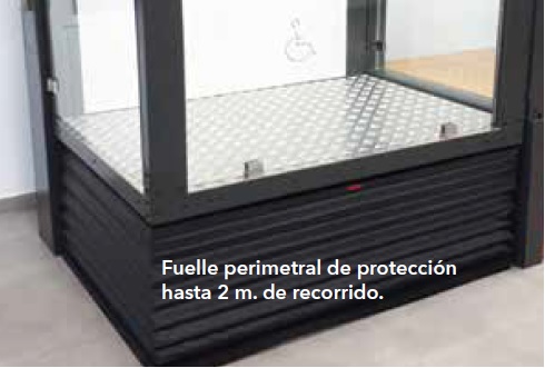 The EVP-R comes equipped with a perimeter enclosure in the form of a bellows, which serves as a safety system during use, in case the lift is not contained within a closed space. It features two glazed safety doors 1.1 meters in height, in the ‘Gran Mirilla’ style, which serve to protect users. Furthermore, we offer the option of motorizing these doors, should the customers express this need. And, if needed, with this model we also offer the option of doors 2.0 meters in height.