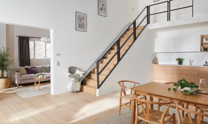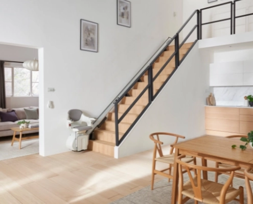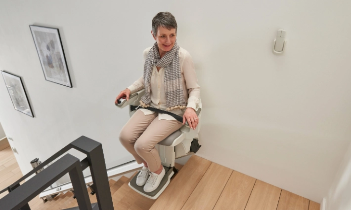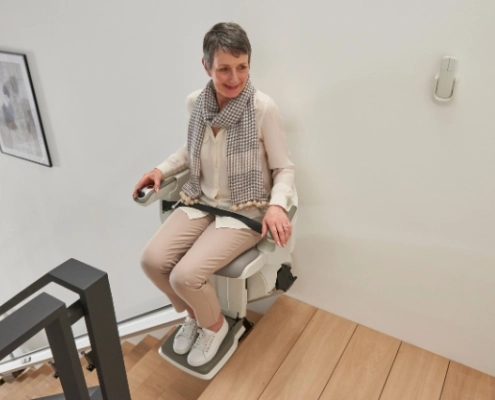 The STR-F chair stairlift makes it possible to move about easily between various floors of the home, with maximum comfort and safety. The STR-F chair stairlift has been developed on the basis of a unique, modern design. It is simple, robust and, above all, it satisfies all accessibility needs.