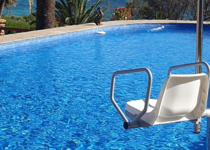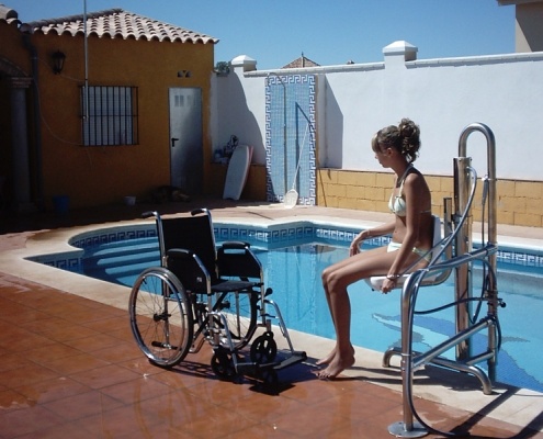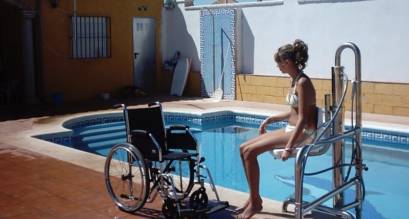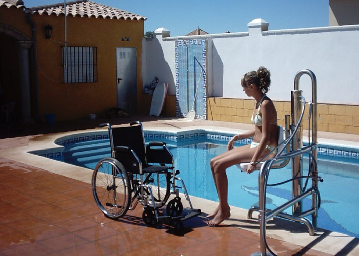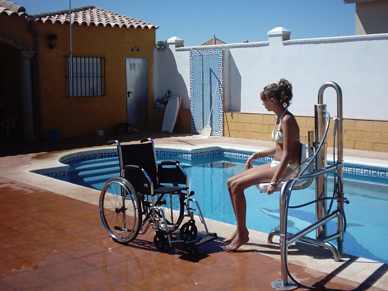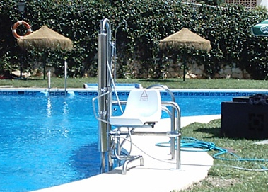 Este elevador hidráulico está ideado para hacer posible, el acceso a Piscinas de personas con discapacidad física de una forma autónoma.