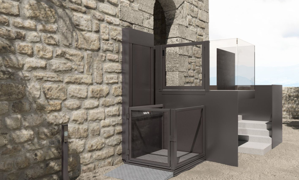 El elevador vertical EVP-S11 es un elevador que no necesita foso ya que incorpora una rampa de acceso si se requiere.